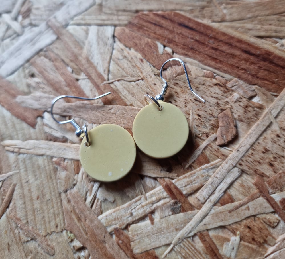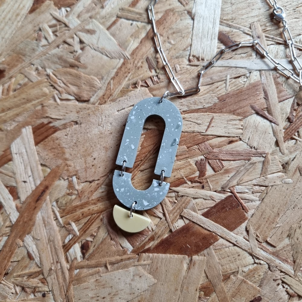 Khaki Green with White Terrazzo and Yellow Half Moon Abstract Necklace