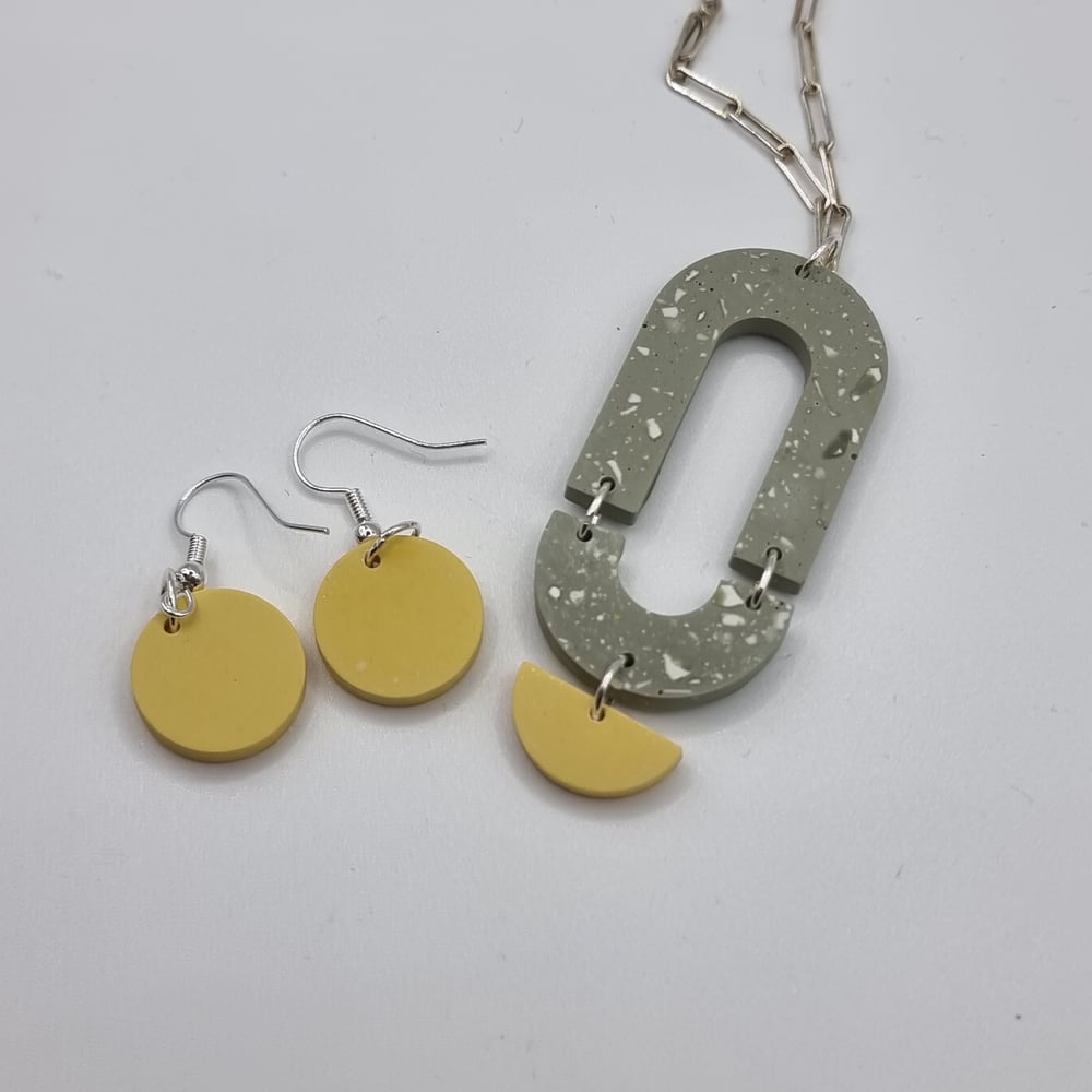 Small circle pendant earrings with silver plated hooks. Can be paired with a matching necklace to make a lovely set.