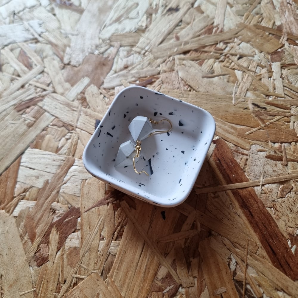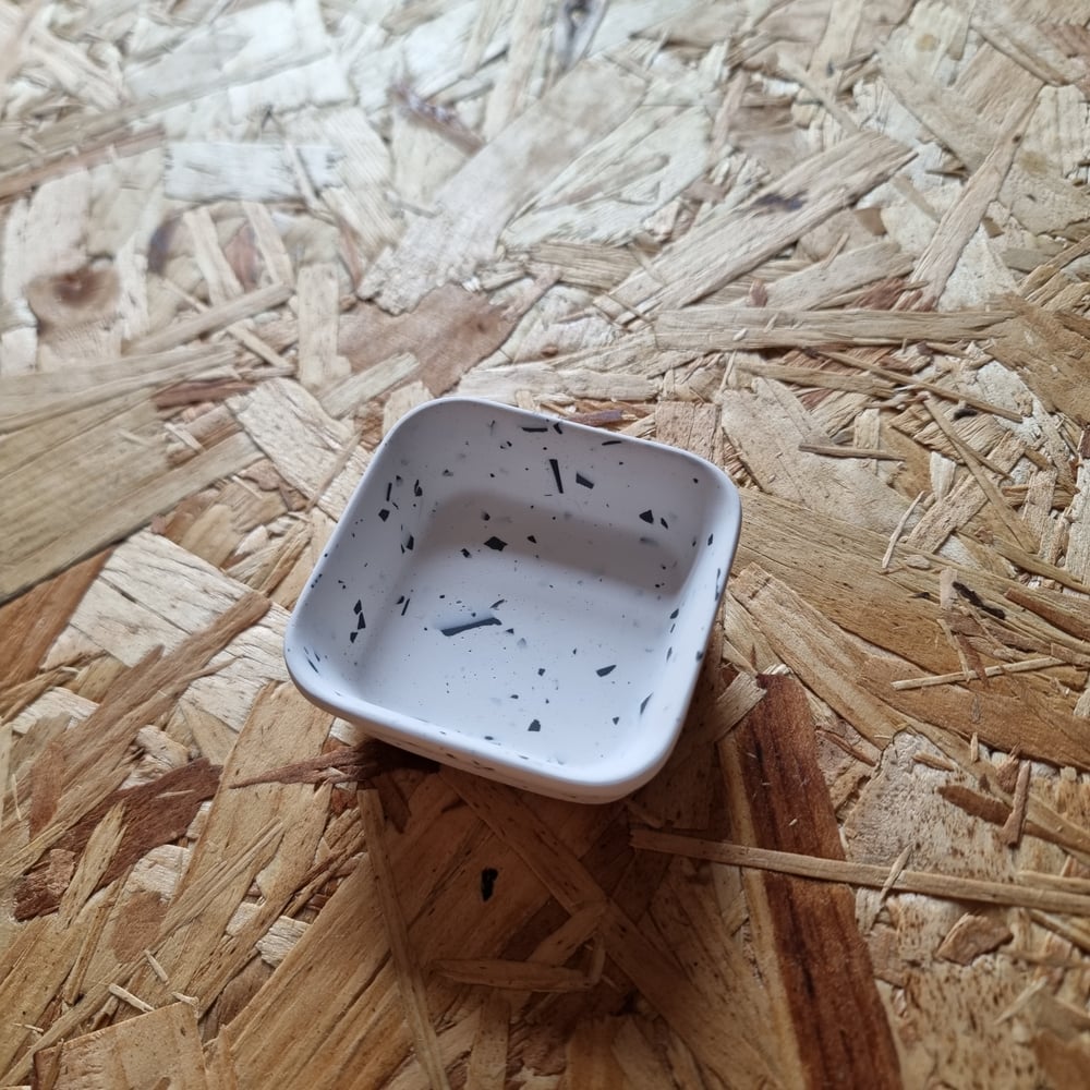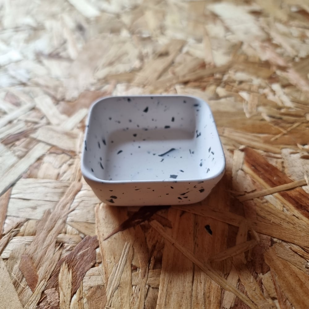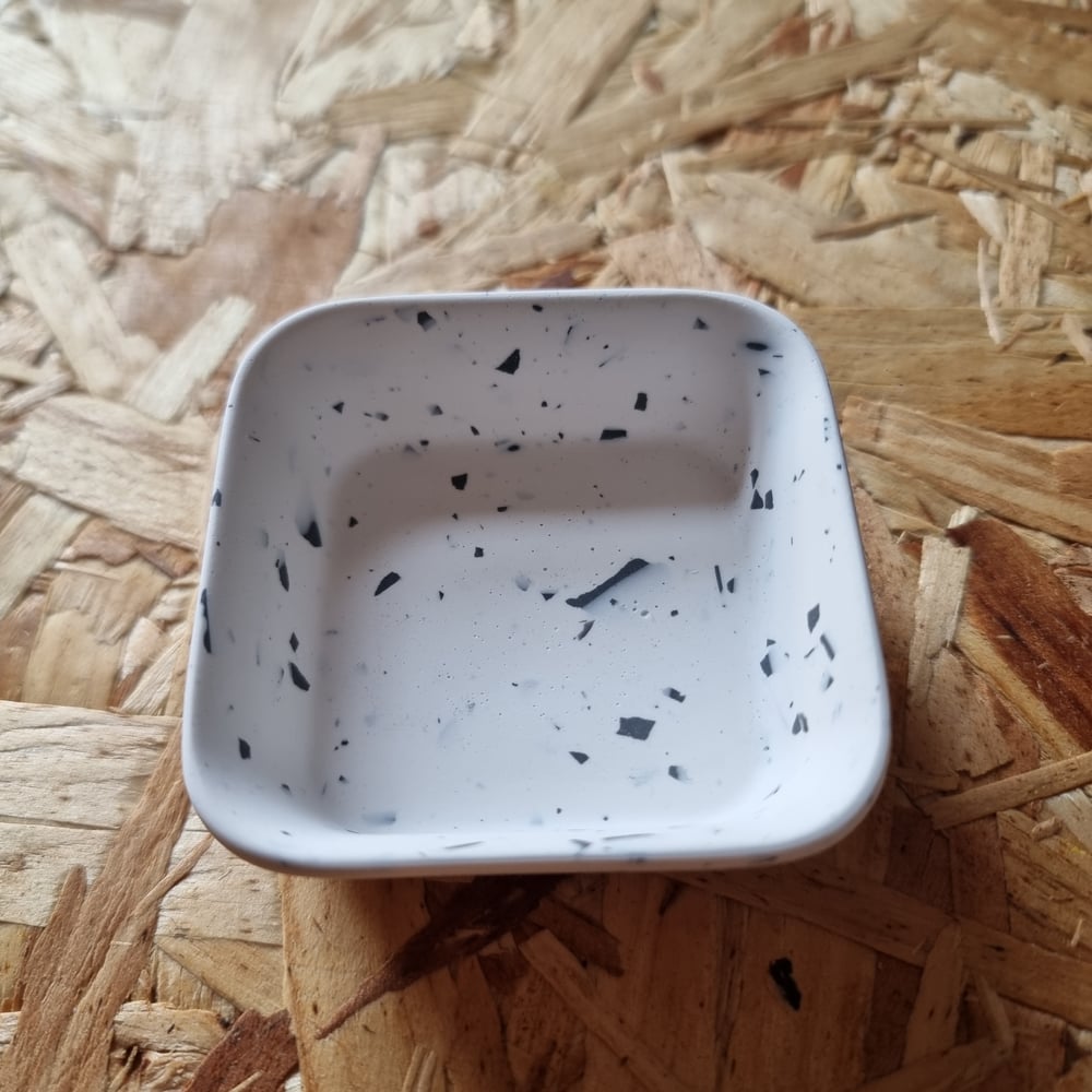 A small square trinket dish made with Jesmonite, an acrylic (water-based) resin mixed with a mineral powder, this off-white casting resin is an eco friendly casting material.